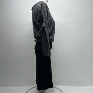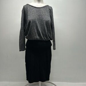 Sandro Dress Midi Long Sleeve Colorblock Zipper Back Linen Black Gray 2 Medium