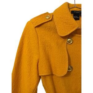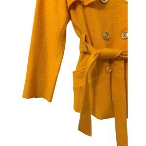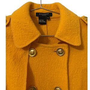 Sandro Egg Yolk Yellow Boiled Wool Belted Peacoat Gold Buttons M