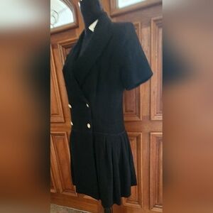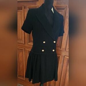 Chic black dress with a double-breasted design. Features gold buttons and a pleated skirt. Perfect for formal occasions.New with tags.
