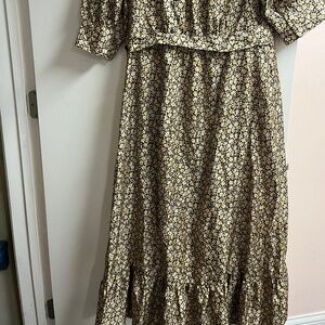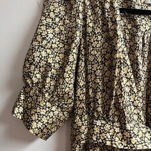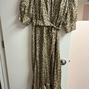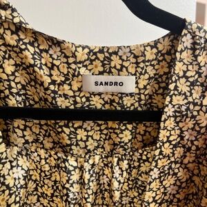 Sandro silk floral black and gold wrap dress. Dress comes with belt. Puff sleeves. Great condition.