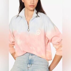 Sandro | Fabien Ombré Tie-Dye 1/4 Zip Pullover Sweatshirt Peace Sign Bunt Size 0