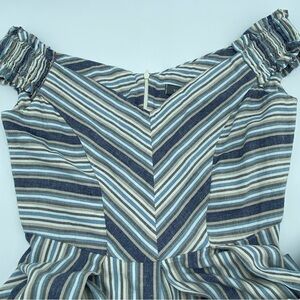 Sandro Ferrone Medium Dress Off The Shoulder Striped Linen Blend Made In Italy