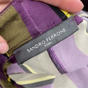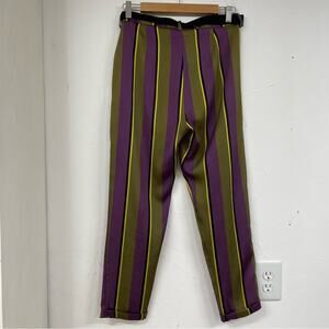 Sandro Ferrone Womens Purple & Green Vertical Striped Dress Pants S Tie Waist