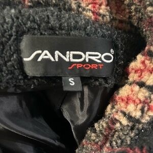 Elegant Sandro Sport jacket with a fleece textured black and red design. Ideal for a sophisticated style. Gently worn,Size small pit to pit 21