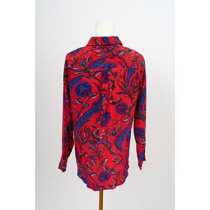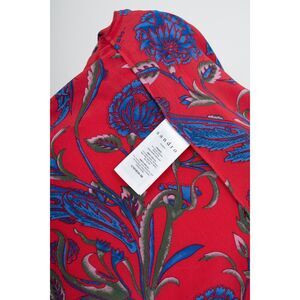 Sandro Floral Print Red Silk Button Down Blouse Top Size 2