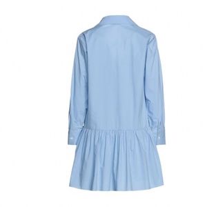 This dress gives a sailor moon aura/essence, to better describe this dress it gives school girl vibes with a preppy ambiance. Ruffle satin sashes at the base coming up a golden token for a button with a classic v neck pointed collar. A lovely dress for the perfect individual.