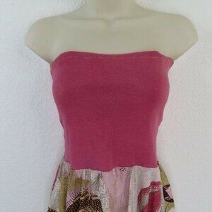 Sandro France Womens 1 Iris Woman Dotted Print Pink Silk Strapless Dress Vintage