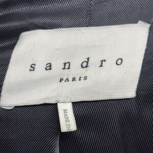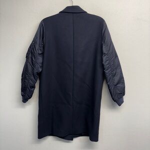 Sandro Gilmour Shell Paneled Wool Blend Coat Asymmetrical Zip Navy Blue 40