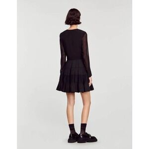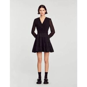 Sandro Ginette Short flowing Dual-Fabric Black Dress Size 42/ US 10 NWT
