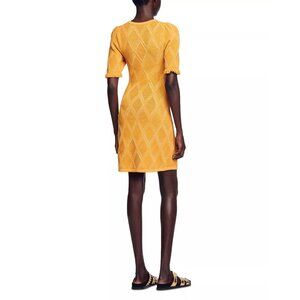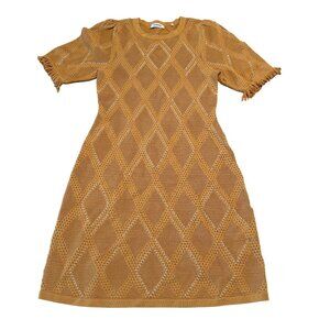 Sandro Gipsy Ochre Orange Pearl Embellished Pointelle Knit Mini Dress Women's 6