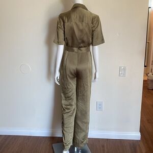 Sandro Gold Olive Green Sisteron Satin Zip Jumpsuit