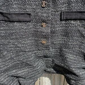 Black tweed (Main: 81% Polyester, 6% Viscose, 5% Acrylic, 3% Polyamide, 2% Metallic Fibers, 2% Cotton, 1% Wool).
