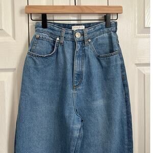 Sandro High-Rise Relaxed Fit Straight Leg Two-Tone Jeans Size FR 34