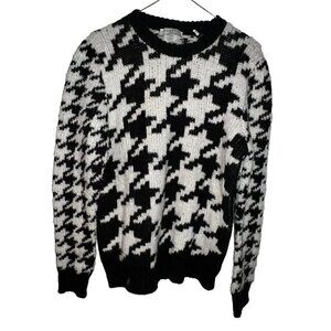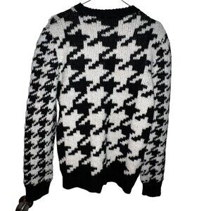 Sandro Houndstooth Sweater Black White Chunky Knit Oversized Women Medium Wool