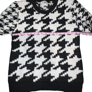 Sandro Houndstooth Sweater Black White Chunky Knit Oversized 2 Italy $400.