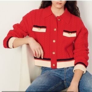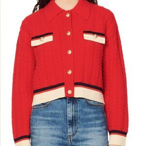 Sandro Idriss Colorblock Cable Knit Wool Cardigan