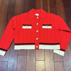 Size 1 equates to a size small. I repaired the buttons and will send an extra button just in case. Size, material and clean tag has been removed. Item is in great condition and will need to be dry cleaned before wearing.