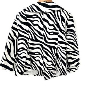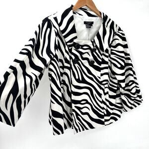 Sandro Sportswear Women's Large Jacket Black White Zebra Print Short Crop + Pockets Top Button Cape Style Lined Artsy Eclectic