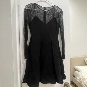 Sandro Paris Jeanette Dress FR 36 Black Long Sleeve Illusion Lace A-Line Women’s NWT $370
