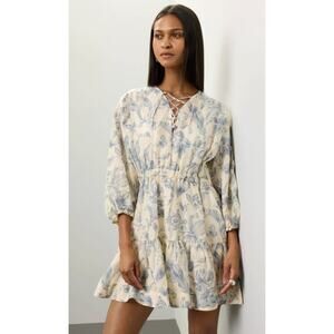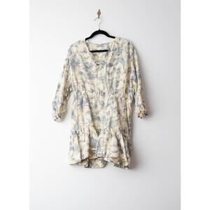 Off white (Main fabric: 57% linen, 43% viscose. Slip: 100% viscose). Casual dress. Tie neck. ¾ sleeve. Pull on closure