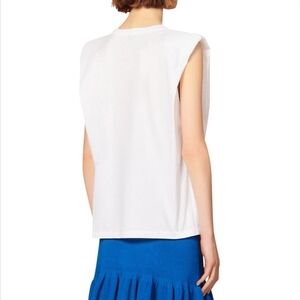 Sandro Just Love White Shoulder Pad Muscle Tee Shirt Size 0