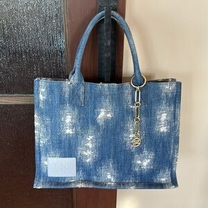 This tie-dyed denim tote by Sandro instantly gives your outfit a casual look.