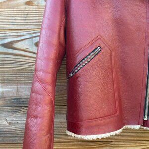 Amazing warm red leather jack from Sandro. It has Sherpa inside so it's super warm and cozy. Only warn a couple of times, size 2.