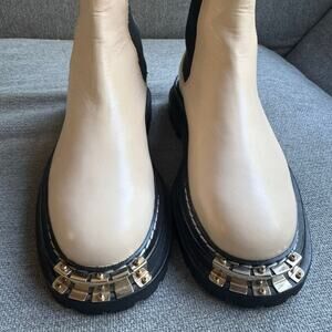 Sandro Liam Chelsea Ivory Cream Leather Boot Pull-on Boho Sz 37 US 6.5