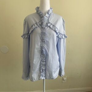 Sandro Light Blue Ruffle Blouse