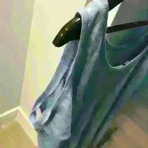 Sandro Linen Blue Top With Open Shoulders