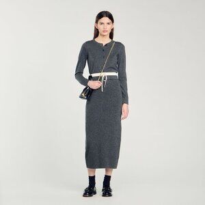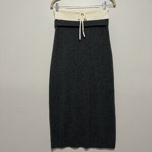 Sandro Long Double Waistband Gray Wool Cashmere Blend Midi Skirt Size 38