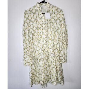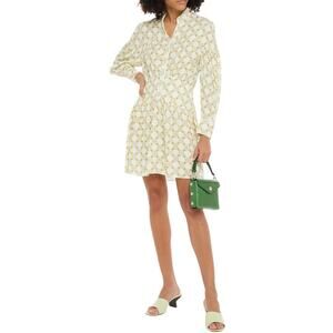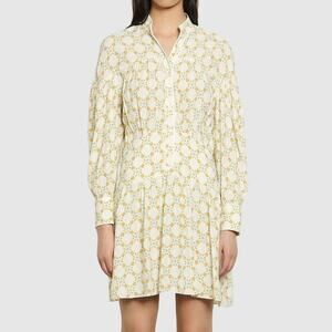 Sandro Magy Floral Jacquard Mini Dress Ivory Long Sleeve Shirtdress