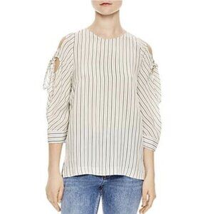 Sandro Manga Striped Cold-Shoulder Tie Top Blouse