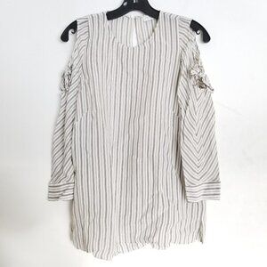 Sandro Manga Striped Cold-Shoulder Tie Tunic Top Blouse Beige