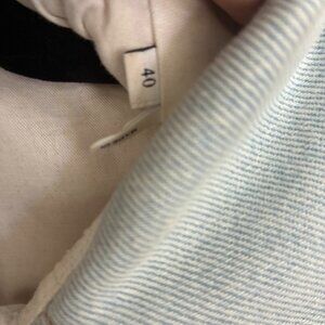 Chic Sandro tweed mid-length dress with a classic collar. Features a yellow base with blue trim. Ideal for stylish outings.
