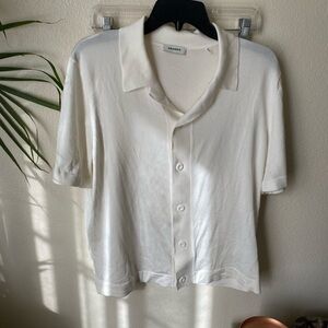 Sandro Men’s Short Sleeve Shirt in Cream Size M Button Down Knit Boxy Shirt in great condition!