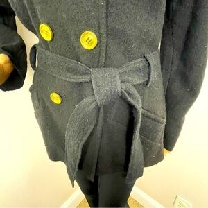 Add timeless sophistication to your wardrobe with this stunning Sandro military-style jacket. Crafted from 100% wool, it features a double-breasted front, waist tie, and decorative shoulder straps for that structured, classic look.