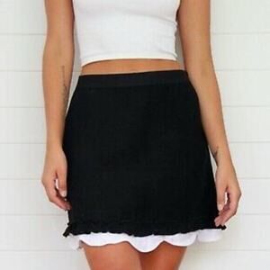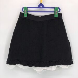 Sandro Mini Skirt Size 1 US 4 Small Scalloped Hem Ruffle Black Textured Short