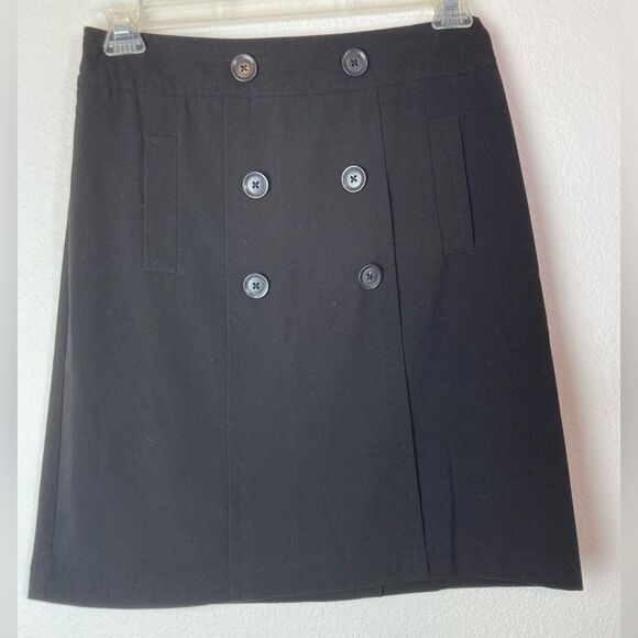 Beautifully made and styled. Classic black skirt w/ side pockets. Black buttons give it French sailor/ American nautical chic. Perfect with striped shirt cute little blazer. Never worn no flaws. Side zip. Waist flat is 15.5” top to bottom 23”. Flirty modern length.