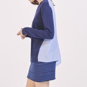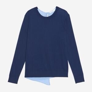 Sandro Navy Blue Tie Back Sweater Baby Blue Silk Open Back 1 S