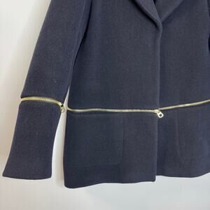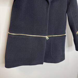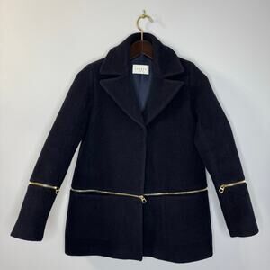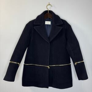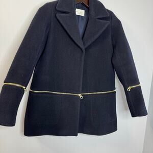 Sandro Navy & Gold Wool Zip Wool Blend Peacoat Jacket Women's 36 S