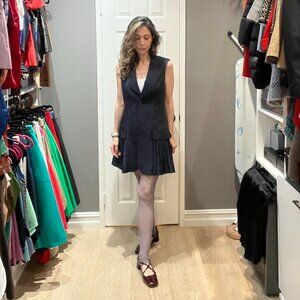 Sandro Navy Sleeveless pleated mini dress size 36 new pristine condition