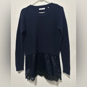 Sandro Navy Sweater with Lace Hem size 1