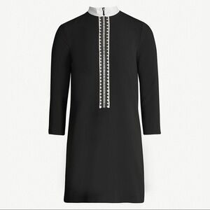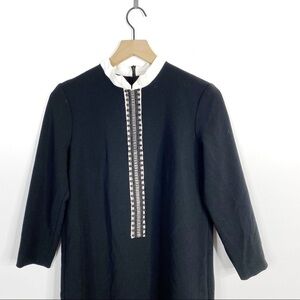 Sandro Noir Contrast Collar Embroidered Bob Dress