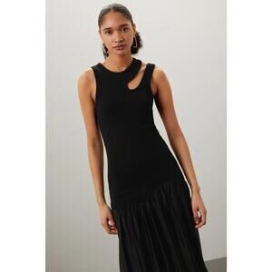 Sandro Olane Black Tank Dress Cutout Shoulder Midi Sleeveless Sz 38 EU / US 6