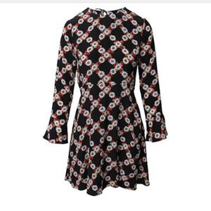 Sandro PARIS Womens Size 1 / Small Black Silk Floral Print Dress 3/4 Sleeve