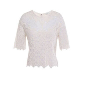Sandro Paris Alycia Guipure Lace Scalloped Victorian Blouse Nude White NWT Small