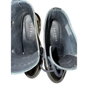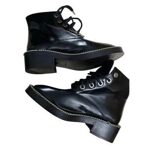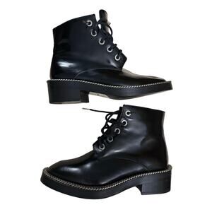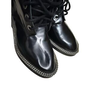 Sandro Paris Black Audrey Patent Leather Lace-Up Chain Trim Combat Boots Size 36