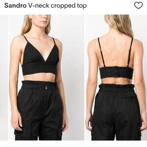Sandro Paris Black Elegant V Neck Triangle Crop Top - Size 3 M/Large (8-10) NWT