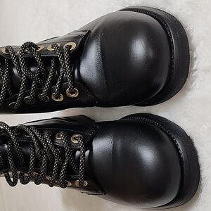 Sandro Paris Black Leather Combat Lace Up Boots Size 39- 8.5